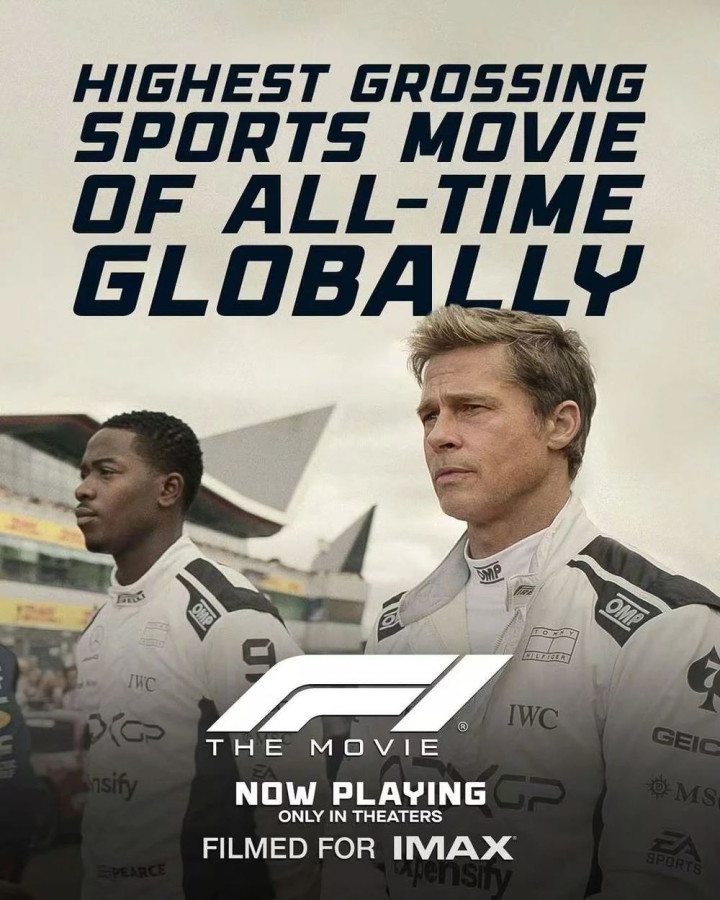 华纳兄弟宣布:《F1:狂飙飞车》成为影史全球总票房最高的体育电影。